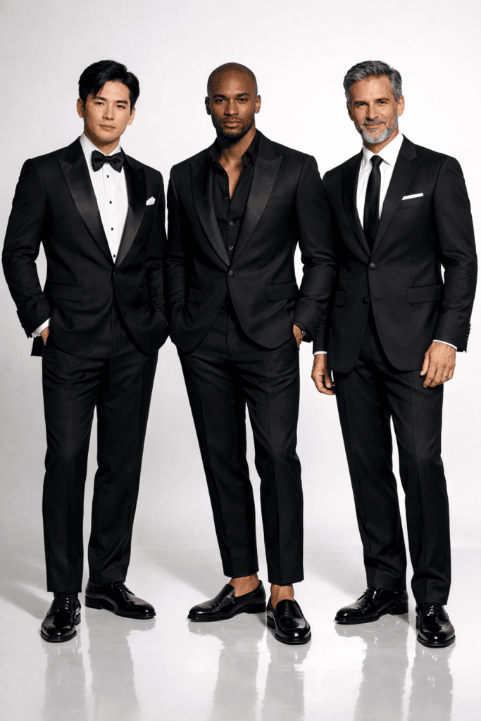 A tuxedo is always appropriate, whether that’s a traditional black tuxedo with a crisp white shirt or a well-tailored black suit paired with a white dress shirt and a black tie or bow tie. For women, a floor-length gown or elevated cocktail dress in black, white, or a chic black-and-white combination. Complete the look with polished shoes and refined accessories. Please avoid casual items like jeans and sneakers, and when in doubt, it is better to be slightly overdressed than underdressed.